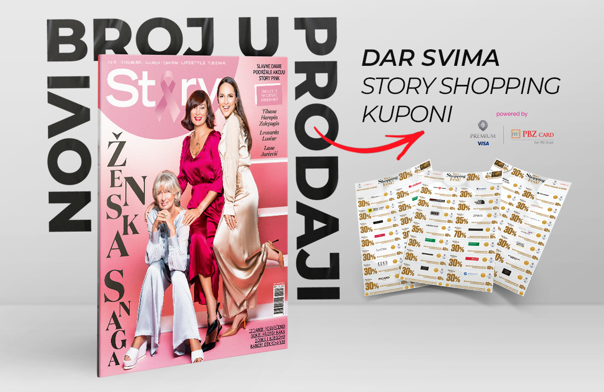 DAR SVIMA! Novi Story donosi svima shopping kupone od 13. do 19. listopada s popustima do 40% na dar! Ne propustite Story Shopping Fest i fantastičnu kupnju sa Story kuponima u više od 500 trgovina diljem Hrvatske, a samo u subotu, 16. listopada, ostvarite dodatne pogodnosti za plaćanje Premium Visa karticom.