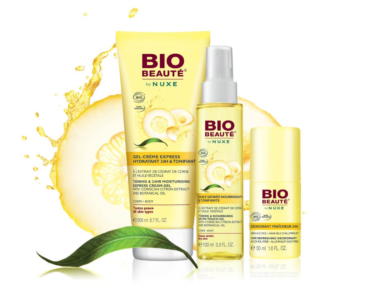 BIO BEAUTÉ® by NUXE predstavlja liniju certificirane ORGANSKE njege za tijelo, koja kombinira tonizirajuće djelovanje ekstrakta citrona s Korzike s organskim biljnim uljima koja savršeno odgovaraju koži.Uzbudljiva svakodnevna poslastica za vraćanje tonusa koži i obnovu njezinog poleta. U procesu razvoja ove nove linije, NUXE je za svoju organsku liniju odabrao sastojke na temelju njihovih svojstava, ali i njihovog porijekla, u skladu s politikom održivog razvoja: Kad god je moguće, biramo sirovine od lokalnih dobavljača, fair-trade mrežu i odgovorne proizvođače. Pažljivo birani partneri koji uljepšavaju kožu samo najboljim sastojcima iz svijeta prirode.