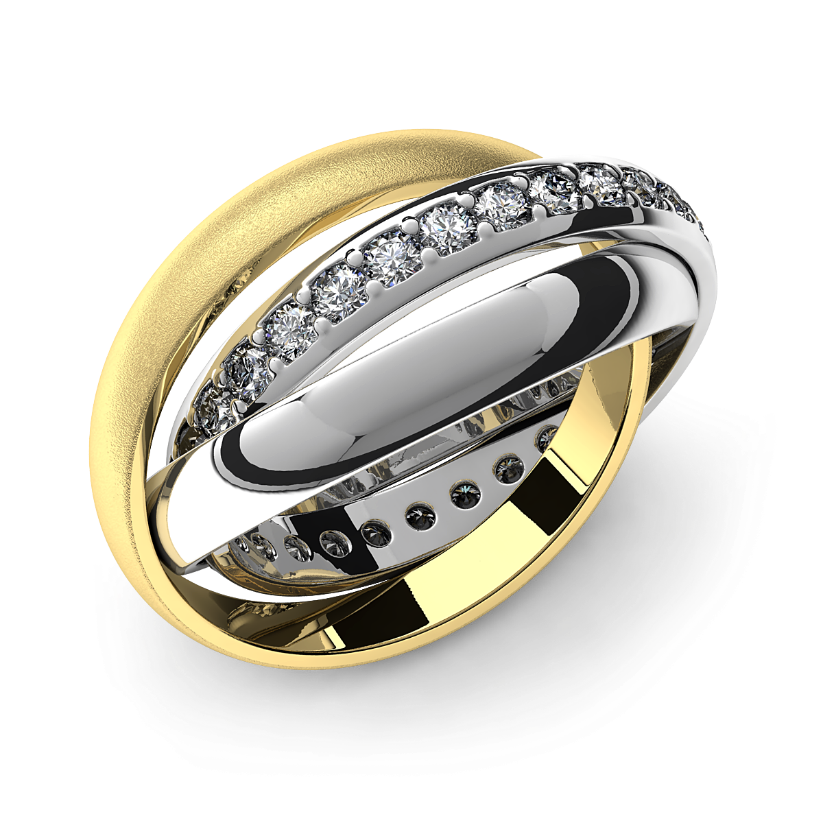 Jednostavan model u tri boje sjajnog zlata; crvena, bijela i žuta. Ova varijanta zbog svoje jednostavnosti preporuča se i za muškarca. Mat žuto zlato u kombinaciji sa bijelim sjajnim zlatom i cirkonima, nešto je smjelija kombinacija, zato svojom elegancijom ostavlja bez daha, i sasvim sigurno će biti primjećena.