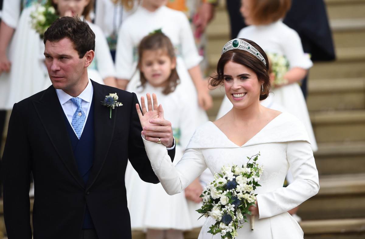 Princeza Eugenie za svoje je vjenčanje odabrala Greville Emerald tijaru urešenu sjanim dijamntima i smaragdima od kojih je onaj centralni procijenjen na impresivnih 93,7 karata. Tijara je izrađena 1919. u slavnoj pariškoj radionici nakita Boucheron za Dame Margaret Greville koja je krunu po svojoj smrti poklonila majci kraljice Elizabete. Princeza uz ovu tijaru nije odabrala veo što je neobično za kraljevsko vjenčanje.