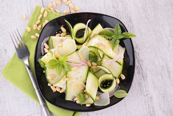 Tikvice kao povrće su jako zahvalna namirnica, zbog svojih mnogobrojnih načina pripreme. Možete ih dinstati, pržiti, kuhati ili jesti sirove. Mi smo za vas pronašli recept za salatu od svježih tikvica u marinadi posipane pinjolima i mentom. Predlažemo da salatu servirate uz neko glavno mesno jelo ili kao hladno predjelo.