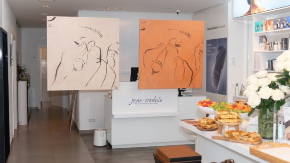 A kako svijet ljepote može djelovati inspirativno na umjetnika, posvjedočila je akademska slikarica Hana Hanak, koja je u DermaCare centru izložila je seriju autoportreta, nadahnutih bojama iz kolekcije ColorLuxe Eye Shadow Stick. U njenom radu često se provlači tema autoportreta, koji su joj na neki način prilika za autorefleksiju, a u suradnji s Jane Iredale dobila je priliku povezati svoje stvaralaštvo sa svijetom ljepote. Jedna od slika nazvana je „Ljepotica”, 2024.