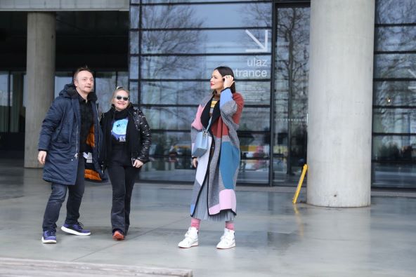 Ovog puta Severina je kaput iskombinirala sa sivim hlačama, bijelim tenisicama i svijetlo plavom Lousi Vuitton torbicom čija je cijela 6500 eura.