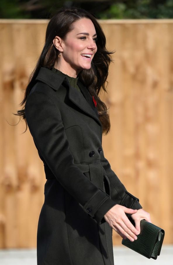 Kate je više puta snimljena i u maslinastom kaputu brenda Hobbs sličnog modela načinjenog od mješavine vune i kašmira, a cijena mu je 369 funti, odnosno 444 eura.