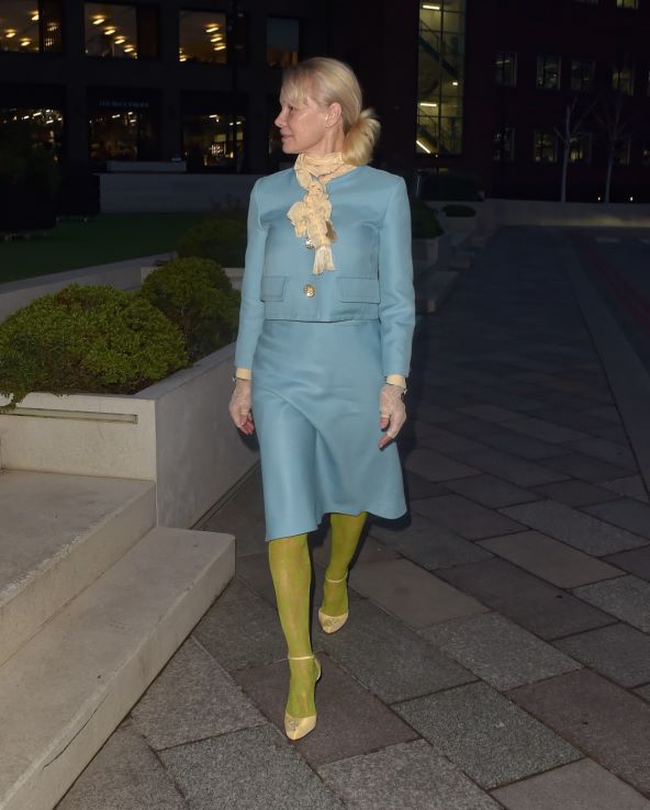 No, detalj koji je izazvao najviše pozornosti bio je odabir najlonki – upečatljivog zelenog para sa suptilnim uzorkom koji je stvarao upečatljiv koloristički kontrast cjelokupnom stajlingu.