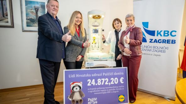 Trgovački lanac Lidl Hrvatska i Klub roditelja nedonoščadi Palčići uručili su vrijedan medicinski uređaj Zavodu za neonatologiju KBC Zagreb. Riječ je o grijanom reanimacijskom stoliću s ugrađenom vagom koji će pomoći najugroženijim prijevremeno rođenim bebama iz cijele Hrvatske. Uređaj je vrijedan gotovo 25 tisuća eura, a sredstva su prikupljena zajedničkim naporima Lidla, udruge Palčići i Lidlovih kupaca koji su kupnjom igračke rakuna Roka u studenom 2023. godine