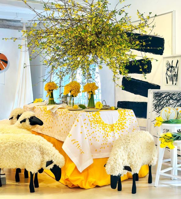 'Neka procvjeta proljeće, narcisi, zlatice i žuti jaglaci. Rasipane latice same su isplele vjenčiće na stolnjacima i slave ljeto i sunce. Ovi su stolnjaci puni sunca, puni žute boje s kojom možete ispuniti svoj dom, ali i postaviti savršen stol u vrtu', rekao je Saša Šekoranja o inspiraciji za novu kolekciju.