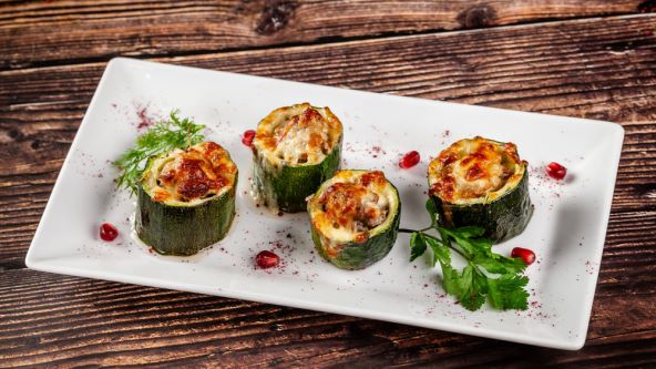 Zagrijte pećnicu na 180-200°C. Tikvicama odrežite gornji dio (ili ako su uske i duguljaste prepolovite ih po duljini). Izdubite dio sa sjemenkama te dobro usitnite i stavite u posudu u koju se odmah mogu dodati sir, jaje te svježe začinske biljke.
