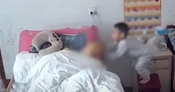 U snimci koju je objavila na društvenoj mreži Douyin, Tutu se penje na stolicu kako bi namjestio glavu ocu koji je u krevetu u vegetativnom stanju.