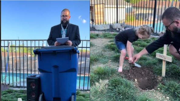 Nekoliko tjedana nakon Hazelinog rođendana, Bishop je podijelio snimku s "pogreba" na TikToku koja je ubrzo postao viralna. Ispod objave korisnici su napisali više od sedam tisuća komentar u kojima hvale roditelje zbog načina na koji su odabrali pozdraviti se s dudom.