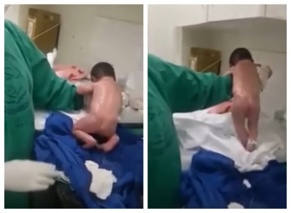Možda vam izgleda nevjerojatno, ali ova je beba čim je došla na ovaj svijet, pokazala da može hodati! Dok ju je primalja držala ispod ramena, ona je hrabro koračala u nekom svome smjeru.