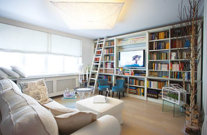 Trebalo je tu silnu elektriku, radnog naziva ‘pauk’, spojiti; kompliciran posao koji se činio jednostavnim zahvaljujući vrijednim rukama majstora od zanata, gospodina Taleta. Prostor odiše bjelinom koja je gotovo nepromijenjena tijekom cijelog dana, što omogućuje prirodna rasvjeta, s obzirom na to da je stan okrenut i prema južnoj i prema zapadnoj strani. Drvenarija je rađena tako da uz estetsku ima i funkcionalnu komponentu – patina koja nastaje sve duljim korištenjem, svaka mrlja ili pukotina postaje dio šarma, te ju nije nužno održavati kao kod bijelih ploha visokog sjaja. Ovdje je zaista svaka pukotina dobrodošla. Napokon se ispunila i želja vlasnice – imati malu biblioteku s ljestvama da se mogu smjestiti sve knjige. Vrijedne ruke gospodina Dekanića i njegove stolarije izradile su apsolutno svaki drveni detalj u prostoru, a posebno sam ponosna na to kako smo istu tematiku proveli u svakom kutku stana, tako da su kupaonica, spavaća i dnevna soba, kuhinja i garderoba zapravo jedna cjelina. Stan je rađen tako da vlasnica nije rob prostora te u svakom trenutku on izgleda uredno i svaki detalj je na svojem mjestu, čak i kada to zaista nije tako. Uvelike u toj slici pomažu daske parketa izbijeljenog hrasta, koji će se, i kada nastanu mehanička ostećenja, savršeno uklopiti u prostor koji podržava patinasti izgled. Kako je kuhinja mala, gradnja otoka bilo je idealno rješenje za vizualno povećanje prostora. Oduvijek je u stanu bila mala ostava koja je zadržana i služi za pohranu stvari koje ne želimo u vidnom polju, a time ujedno rasterećujemo i kuhinju. Osim savršeno izrađene stolarije, stanom dominiraju ugodna bijela sofa s pratećim tabureom, koji služi i umjesto stola, bijeli jastuci koje je dekorater Stjepan Kovačić izradio za sjedenje na podu, jer trenutačno nije predviđeno klasično sjedenje i jedenje. U tu svrhu služi otok u kuhinji. Gospodin Stjepan je omogućio i sjedenje u prozoru iznad drvenom maskom skrivenog radijatora, koji se spaja na biblioteku, te se ta linija ne prekida, pa vizualno izduljuje zapadnu stranu stana. To je idealno mjesto za ispijanje kave i doručak, uz divan pogled na vrt i ružu koja raste oko posebno dizajniranih rešetki-kutija za prozore.