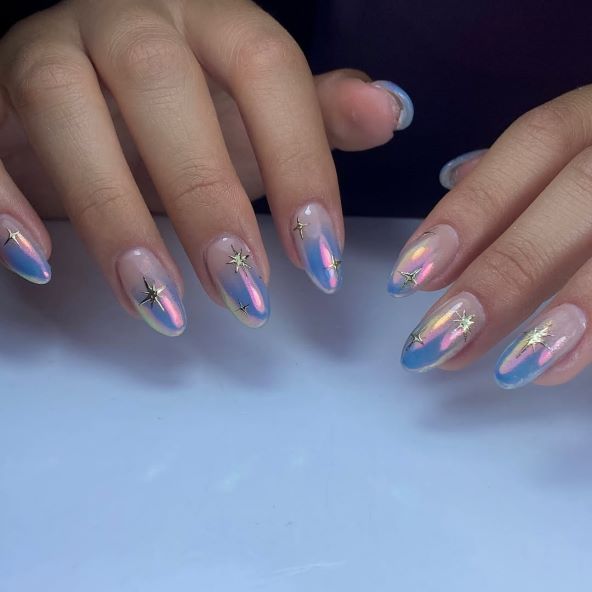 Aurora nokti naziv su dobili po predivnoj prirodnoj pojavi, aurori borealis, odnosno polarnoj svjetlosti. Ova manikura koristi kromirane, holografske i prozirne efekte kako bi se stvorio dojam svjetlosne igre na površini nokta. Rezultat? Nokti koji izgledaju svjetlucavo, prozračno i futuristički, s refleksijama koje mijenjaju nijanse ovisno o svjetlu i kutu gledanja.