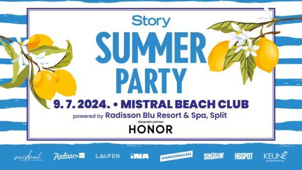 Uz generalnog partnera HONOR, Story Summer Party podržavaju Mistral Beach Club, Radisson Blu Resort & Spa, Laufen, Ina, Sensation Tonic, HGSPOT, Keune Haircosmetics, PPD Global – vodeća distribucija alkoholnih pića i illy kave (Aperol Spritz i Campari Spritz).