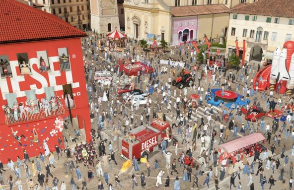 Kampanja je snimljena u mjestašcu Breganze u Italiji, gdje se nalazi Dieselovo globalno sjedište od svog osnutka 1978. godine, i sadrži šest fotografija koje vas pozivaju da se u njih udubite jer tamo vas očekuju modni prizori nadrealnih, apsurdnih, zabavnih scena koje podsjećaju na zabave na seoskim trgovima, a uz Glenna Martensa potpisuju je umjetnički direktor Chris Simmonds i fotograf Johnny Dufort.