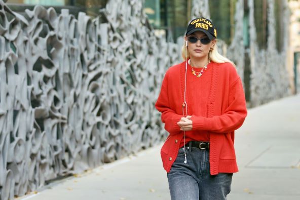 Gigi Hadid nosi crvenu boju sezone u kombinaciji s trapericama