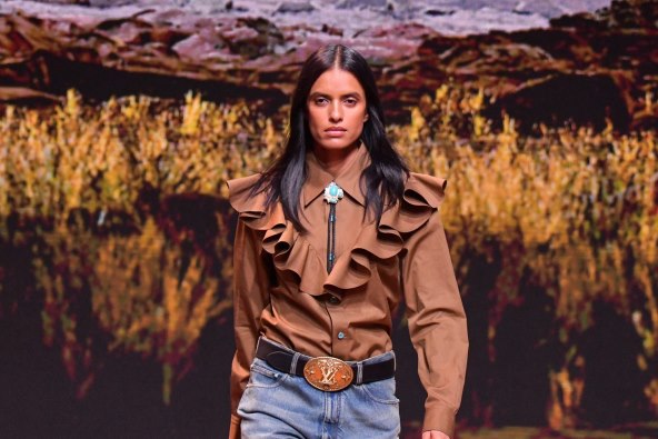 A osim priče o muškim lookovima, torbama, cipelama i detaljima kao što su kaubojski šeširi i bolo kravate, nekoliko ženstvenijih lookova zaslužuju pažnju i ženskog dijela publike. U modnim revijama nije novo vidjeti muške modele usred revije za žensku kolekciju, ali i suprotno, ali taj doživljaj na upravo održanoj reviji Louisa Vuittona je bio posebno zanimljiv, tako da je ženski modni svijet i više nego pozvan da preuzme istaknute detalje i uklopi ih u vlastite statement modne kombinacije.