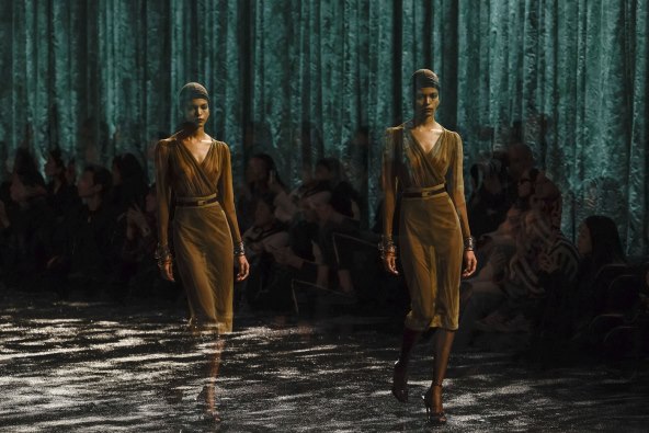 A što su modeli predstavili za jesen/zimu 2024? Kodove modne kuće u formama oversized jakni i bundi, odijela, suknji, priprijenih svilenih tkanina, te vrlo prozirnih modela. Sve je bilo začinjeno odličnim komadima nakita, turbanima nalik onima iz YSL kolekcije "Ballet Russe" iz 1977., šalovima, remenjem... Ali bez ijedne torbe.
