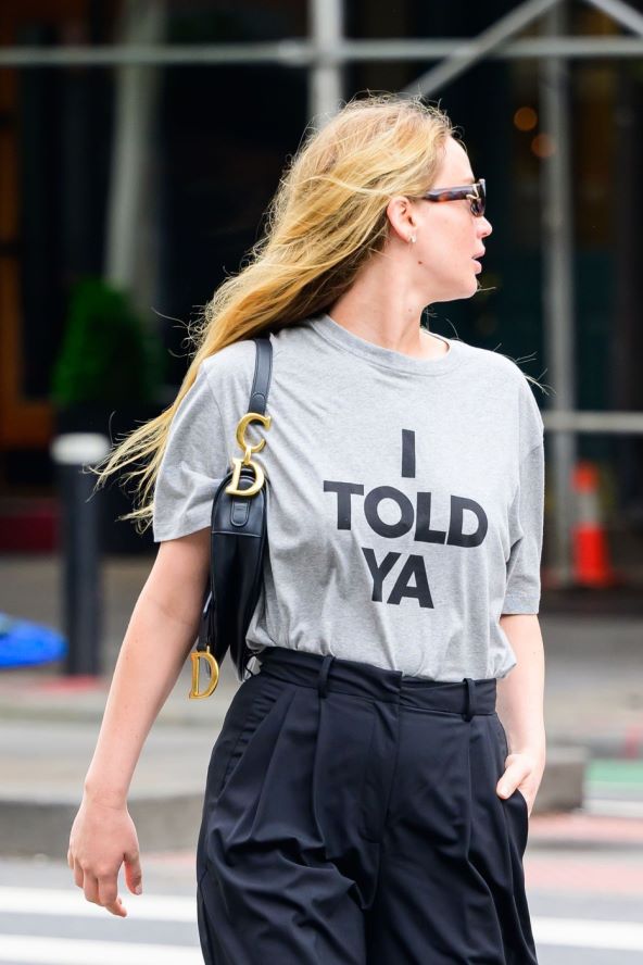 Jennifer Lawrence nosi popularnu majicu s kratkim rukavima i natpisom