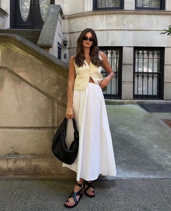 Kao što smo gore već spomenuli, bijele dugačke suknje su apsolutni hit za ovu sezonu. Definitivno je riječ o komadu u koji vrijedi investirati jer se može odjenuti u raznim prigodama. Ista je stvar s asimetričnim žutim topom. Može se nositi u posebnim prigodama, kao i ležernim street style izdanjima.