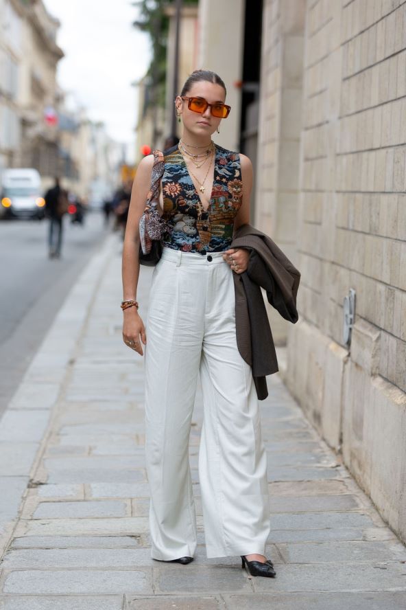 Sivi i crni prsluci vladali su tijekom zimskih mjeseci, no ljeto je sve u znaku bijelih alternativa za trendi, krojene kombinacije. Za stiliziranje ovog kompleta dodajte upečatljive naušnice i torbu u kontrastu. Za još više boje odaberite par sandala s remenom u tamnim nijansama.