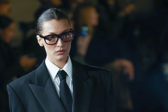 Zato je modna zajednica vijest kako je Bella opet na pisti dočekala s velikim odobravanjem, a dah je oduzela kada je prošetala noseći odijelo s dvorednim kopčanjem, jedno od onih koja su oduzimala dah. Zalizane kose u nisku punđu s klasičnim Saint Laurent naočalama, njezin je look svojevrsni hommage samom gospodinu Saint Laurentu, preciznije njegovom načinu odijevanja, što je opisano i u samim bilješkama vezanim uz kolekciju predstavljenu na reviji.