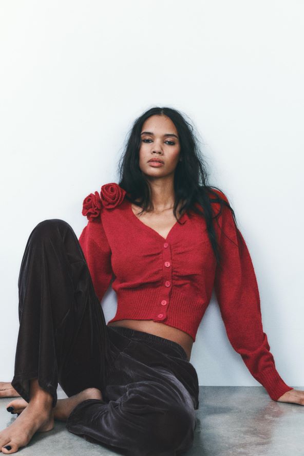 Crveni kardigan iz Zare s cvjetovima za jesen i zimu 2024