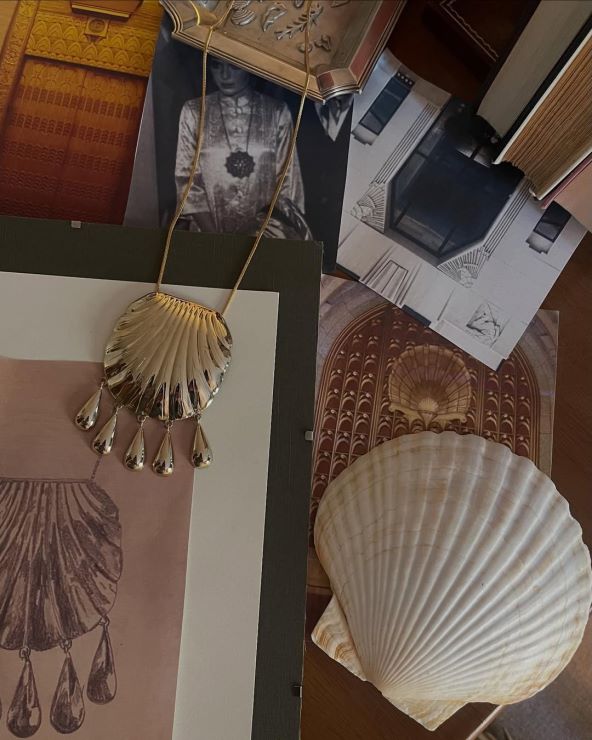 Inspiracija je došla sa stare fotografije glumice Mie Farrow na premijeri filma Rosemary's baby na Filmskom festivalu u Cannesu 1968. godine. Kako je i sama kreatorica rekla, njezin je tadašnji look pomogao definirati veličinu i opseg privjeska i lančića. Ferentinos je također prošla kroz izmišljene i postojeće reference koje su obuhvaćale školjke, motive Art Decoa, arhitekturu, savante u stilu 60-ih i 70-ih te sve što aludira na njezino grčko-rimsko nasljeđe.