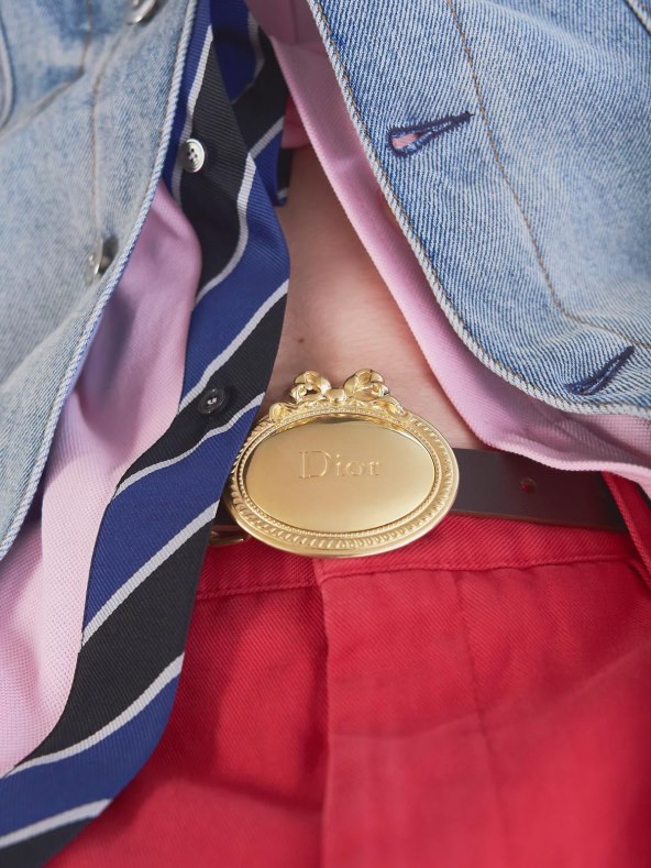 I dok se ovih dana vrti priča o osobnom stilu Andersona, praktičnoj kombinaciji minimalizma i svakodnevne praktičnosti, mi pogled zaustavljamo na jednom sasvim zanimljivom detalju - remenu. I to onom kožnom koji se ističe velikom metalnom kopčom (dolazi u zlatnoj i srebrnoj boji), a privlači formom, oblikom Dior okvira s mašnom, koji je poput relikvije modnog nasljeđa oživljen i utisnut u trend povratka remenja s istaknutim logom modne kuće. Na sredini kopče nalazi se i novo stari Dior logotip, tipografije koju je koristio i sam Christian Dior, u kojem je slovo D veliko a ostala slova imena brenda su mala.