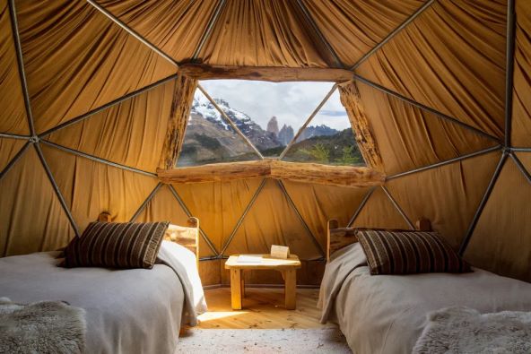 Dobrodošli u kamp smješten u Torres Del Paine, čileanskom nacionalnom parku, koji je 1978. proglašen rezervatom biosfere UNESCO-a. Smješten je u najjužnijoj čileanskoj regiji - Magallanes y de la Antártica Chilena, oko 130 km sjeverno od grada Puerto Natalesa. U ovom je smještaju sve podređeno prirodi i zelenoj energiji, a očekuju vas četiri tipa šatora kupola, opremljeni punim komforom, pećima na drva, eko toaletima... Ispijanje koktela uz pogled na planinske vrhunce pod snijegom zvuči odlično.
