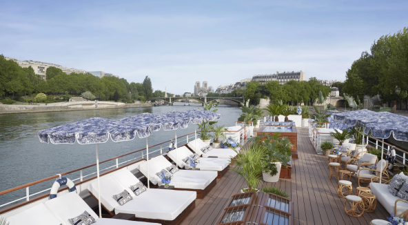Romantično uređena jahta uključuje prepoznatljivi toile de jouy marke, u plavim i bež detaljima, kao i pletene detalje. Ispod palube su smještene kabine za tretmane i njegu a gornja paluba broda prostire se na 1290 četvornih metara te se može pohvaliti prostorom za sportske aktivnosti na otvorenom, juice barom i bazenom — te atraktivnim ležaljkama s kojih je doživljaj promatranja pariških znamenitosti poput katedrale Notre-Dame, Musée d'Orsay i Grand Palais zasigurno jedinstveni doživljaj.