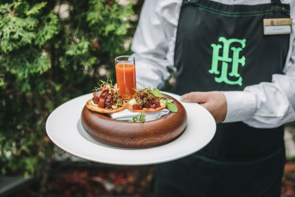 Glavna jela uključuju i neke klasike pripremljene na suvremen način, a posebna se pažnja pridaje detaljima i odabiru sezonskih namirnica. Jelenji ossobuco poslužuje se s domaćim kukuruznim njokima u umaku od začinskog bilja i vina, dok je janjeći kare uparen s mladim graškom i brokulom, a za dodatnu teksturu tu je i panko crumble s notom mente. Riba je u ljetnim mjesecima nezaobilazna, stoga predlažemo sočnu i hrskavu pečenu trilju s koricom od sušene rajčice, bijelom palentom i slatko-pikantnom marmeladom od rajčice i čilija. Preporučujemo i poširani losos s marmeladom od rabarbare, kremom od wasabija i pjenom od korijandra. U pripremi ovog jela upotrebljavaju se svi dijelovi ribe i ono je pravi primjer toga koliko održiva kuhinja može biti ukusna.