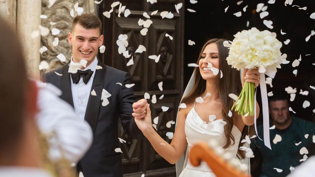 PRVE FOTKE MLADENACA: Lijepa Helena blista u jednostavnoj vjenčanici, izraz lica Dominika Livakovića govori sve
