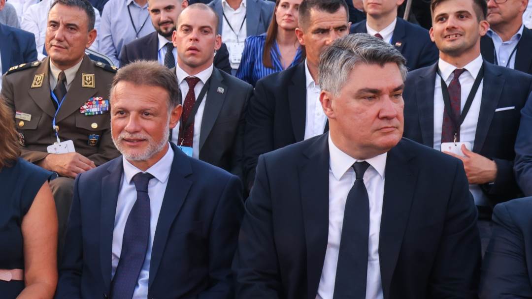 IGNORIRALI SE UNATOČ OBITELJSKOJ POVEZNICI: Milanović i Jandroković sjedili jedan do drugog na otvorenju Pelješkog mosta
