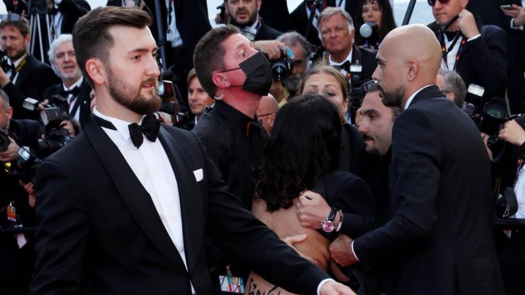 SKANDAL NA FILMSKOM FESTIVALU U CANNESU: Na crveni tepih istrčala gola prosvjednica obojena u boje ukrajinske zastave