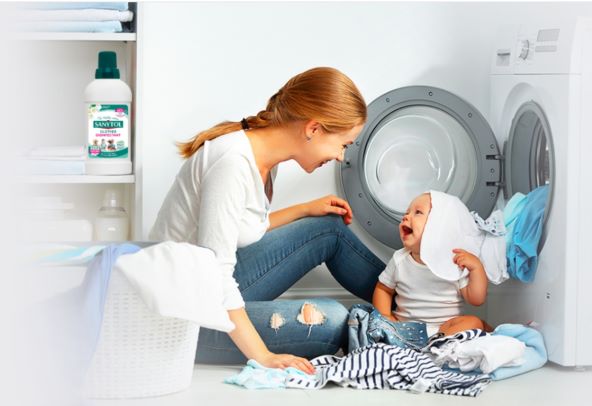 Nadalje, roditelji male djece moraju biti posebno oprezni, jer se bakterije, virusi i gljivice vrlo lako prenose s tjelesnih tekućina, sline, povraćanja ili manjih nezgoda na odjeću i sve tekstilne površine u domu. Upravo su tkanine idealno mjesto za njihovo zadržavanje i razmnožavanje – osobito kada su vlažne ili se ne peru dovoljno visokom temperaturom. U ranim godinama djetetova života njihov se imunološki sustav još razvija, zbog čega su puno osjetljiviji na različite mikrobe koji mogu izazvati infekcije kože, probavnog trakta ili dišnog sustava. Bakterije poput E. coli ili Staphylococcus aureus te virusi koji uzrokuju prehlade i želučane viroze često se zadržavaju upravo na odjeći, posteljini, plišanim igračkama ili podnim prostirkama. Zato je važno redovito i pravilno dezinficirati njihovo okruženje. Sanytol radi ono što običan deterdžent ne može – potpuno uklanja mikroorganizme.